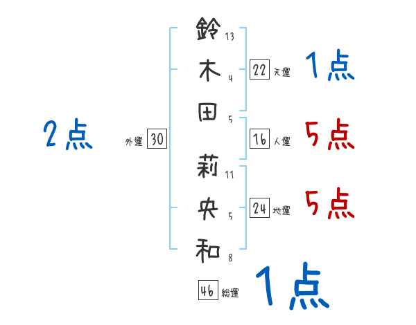 人運![]() | 鈴木田莉央和さんの人運は16画の5つ星!人望が厚く大きく発展する。逆転成功が見える。 性格や才能などを表す2番目に重要な運勢です。人間関係や協調性、社会的な成功に影響します。主に20歳から50歳ぐらいまでの中年期の運勢を表します。 |