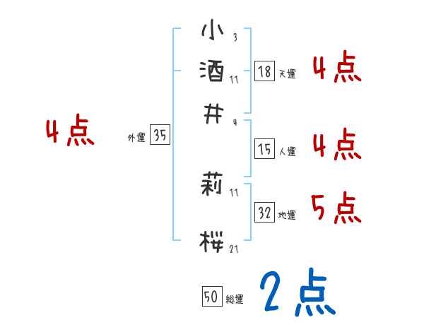 小酒井莉桜さんの画数の鑑定結果