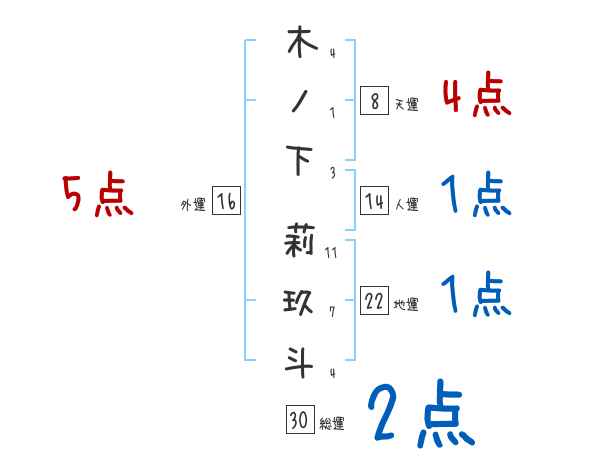 総運![]() | 木ノ下莉玖斗さんの総運は30画の2つ星!浮き沈みの激しさに注意しましょう。 あなたの人生を表す1番重要な運勢です。生涯を通じて影響する総合運となり、主に50歳以降の晩年期に影響を及ぼします。 |