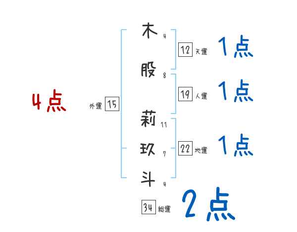 外運![]() | 木股莉玖斗さんの外運は15画の4つ星!人徳があり出世する。順調に物事を進め円満な人生。 生活面を象徴する運勢です。外部から受ける影響力を表し、結婚運、家庭運や職場、環境への順応性を表します。 |