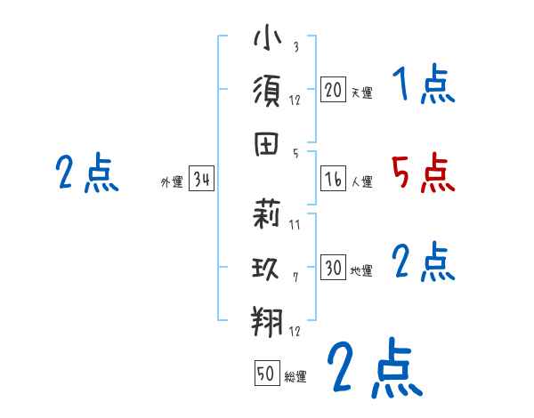 小須田莉玖翔さんの画数の鑑定結果