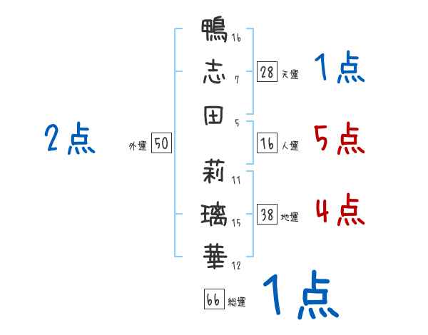 鴨志田莉璃華さんの画数の鑑定結果