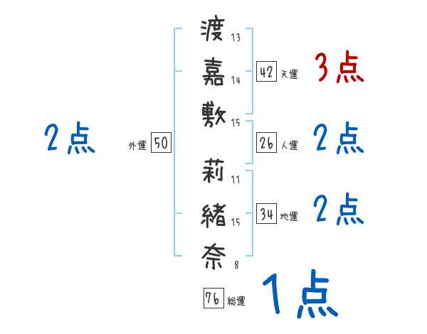 渡嘉敷莉緒奈さんの画数の鑑定結果