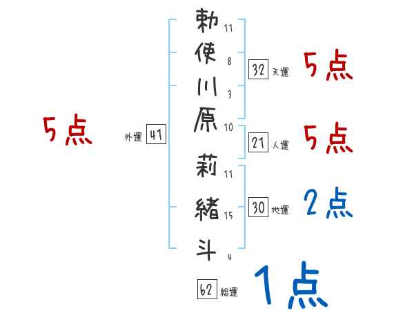勅使川原莉緒斗さんの画数の鑑定結果