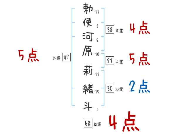 勅使河原莉緒斗さんの画数の鑑定結果