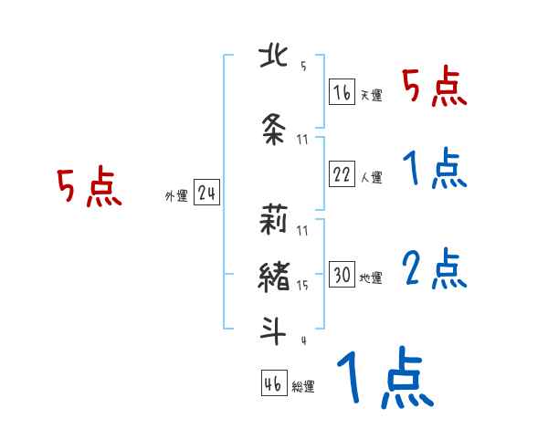 北条莉緒斗さんの画数の鑑定結果