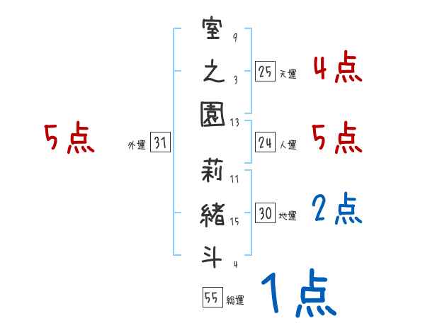 室之園莉緒斗さんの画数の鑑定結果