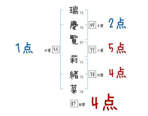 瑞慶覧莉緒菜さんの画数の鑑定結果
