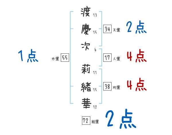 渡慶次莉緒華さんの画数の鑑定結果