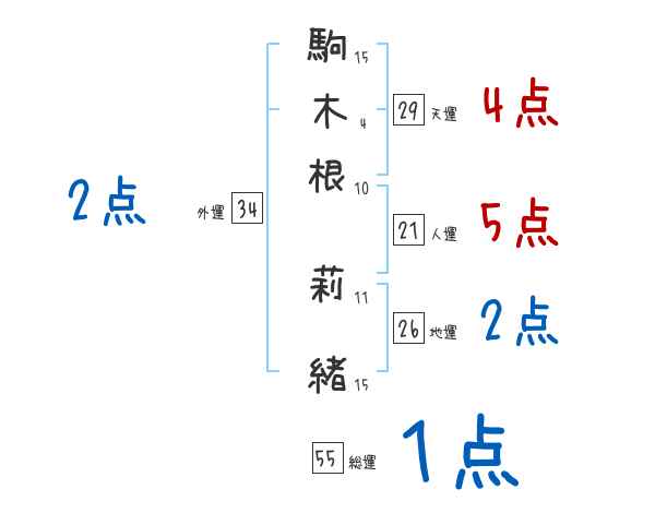 駒木根莉緒さんの画数の鑑定結果