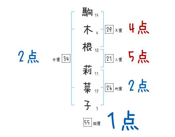 天運![]() | 駒木根莉菜子さんの天運は29画の4つ星!完全主義で才能がある。厳格な心の持ち主。 家系が持つ宿命的な運勢を表します。祖先から受け継いだ苗字ですので自分の力が及びません。家柄を象徴します。 |