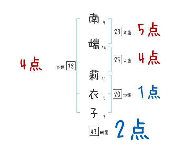 南端莉衣子さんの画数の鑑定結果