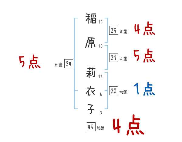 稲原莉衣子さんの画数の鑑定結果