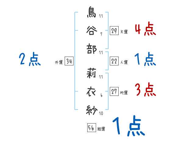 鳥谷部莉衣紗さんの画数の鑑定結果