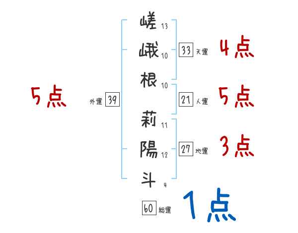 嵯峨根莉陽斗さんの画数の鑑定結果