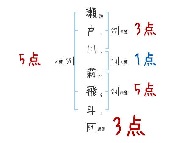 瀬戸川莉飛斗さんの画数の鑑定結果