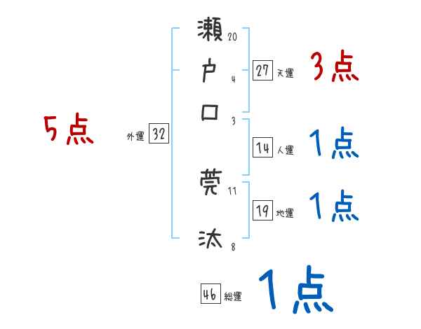 外運![]() | 瀬戸口莞汰さんの外運は32画の5つ星!柔軟性があり成功する。チャンスが多く金運が良い。 生活面を象徴する運勢です。外部から受ける影響力を表し、結婚運、家庭運や職場、環境への順応性を表します。 |