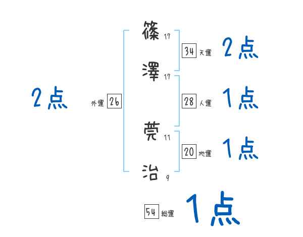 外運![]() | 篠澤莞治さんの外運は26画の2つ星!波瀾万丈かも。信頼できる人を大事にしましょう。 生活面を象徴する運勢です。外部から受ける影響力を表し、結婚運、家庭運や職場、環境への順応性を表します。 |
