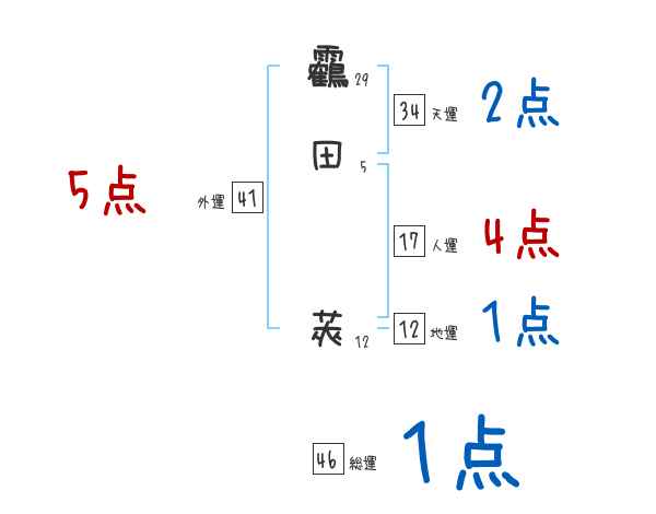 靏田莢さんの画数の鑑定結果