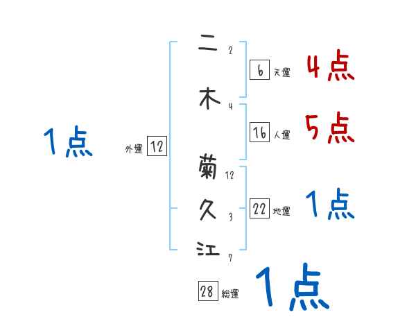 二木菊久江さんの画数の鑑定結果