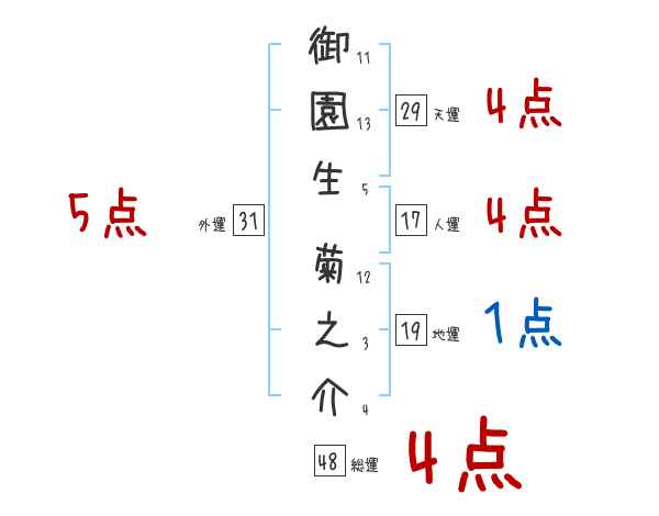 外運![]() | 御園生菊之介さんの外運は31画の5つ星!社交性があり判断力に優れる。順風満帆な人生で円満な生活。 生活面を象徴する運勢です。外部から受ける影響力を表し、結婚運、家庭運や職場、環境への順応性を表します。 |