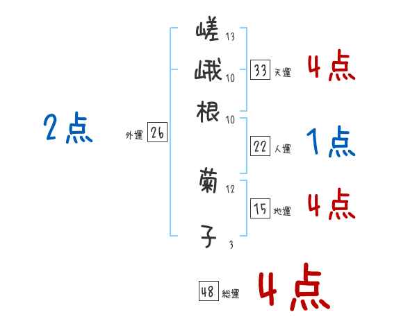 嵯峨根菊子さんの画数の鑑定結果