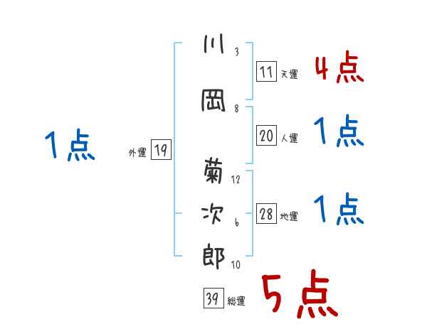 川岡菊次郎さんの画数の鑑定結果