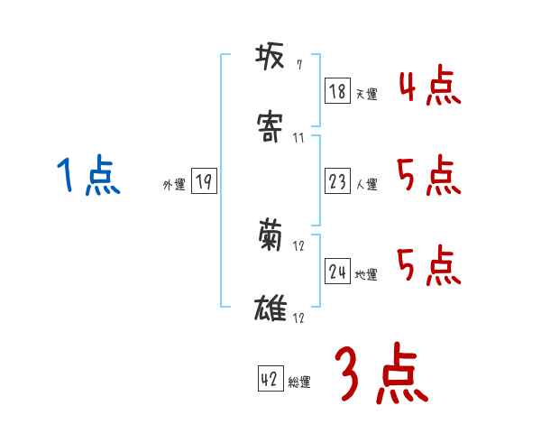 坂寄菊雄さんの画数の鑑定結果