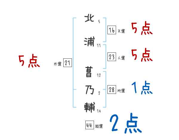 北浦菖乃輔さんの画数の鑑定結果
