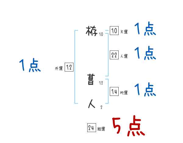 天運![]() | 栫菖人さんの天運は10画の1つ星!不安を感じやすい傾向。ストレスを抱えないように注意しましょう。 家系が持つ宿命的な運勢を表します。祖先から受け継いだ苗字ですので自分の力が及びません。家柄を象徴します。 |