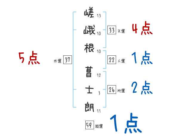 外運![]() | 嵯峨根菖士朗さんの外運は37画の5つ星!努力家で順応性に優れる。現実的な考え方ができ忠実に物事をこなす。 生活面を象徴する運勢です。外部から受ける影響力を表し、結婚運、家庭運や職場、環境への順応性を表します。 |