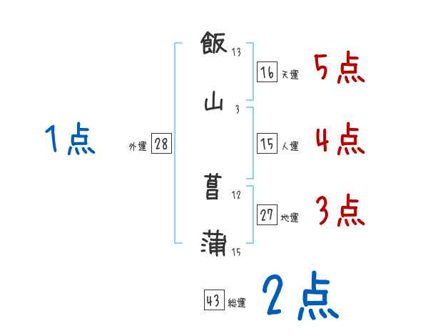 人運![]() | 飯山菖蒲さんの人運は15画の4つ星!人徳があり出世する。順調に物事を進め円満な人生。 性格や才能などを表す2番目に重要な運勢です。人間関係や協調性、社会的な成功に影響します。主に20歳から50歳ぐらいまでの中年期の運勢を表します。 |