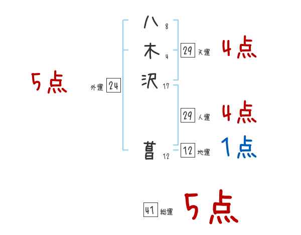 八木沢菖さんの画数の鑑定結果