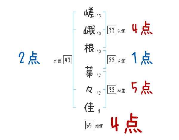 嵯峨根菜々佳さんの画数の鑑定結果