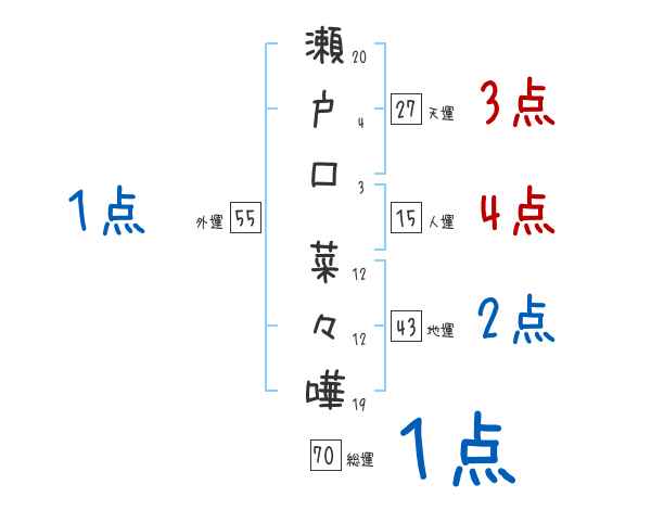 瀬戸口菜々嘩さんの画数の鑑定結果
