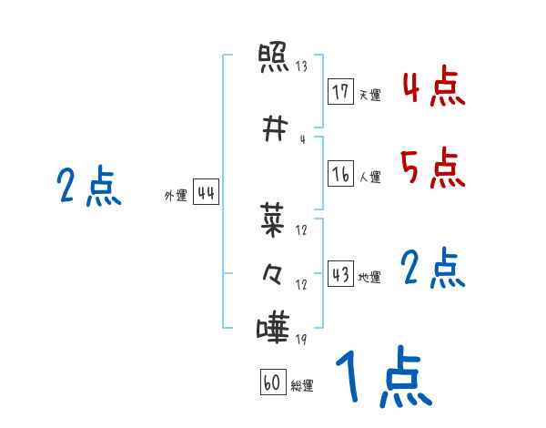 照井菜々嘩さんの画数の鑑定結果