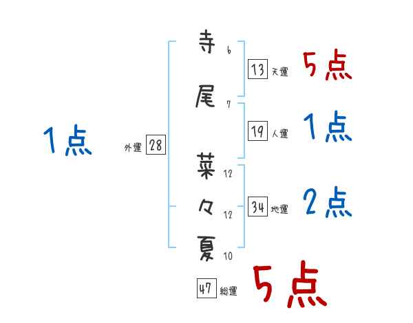 寺尾菜々夏さんの画数の鑑定結果
