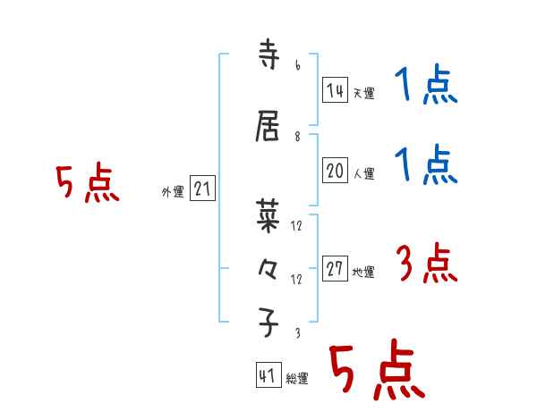 寺居菜々子さんの画数の鑑定結果
