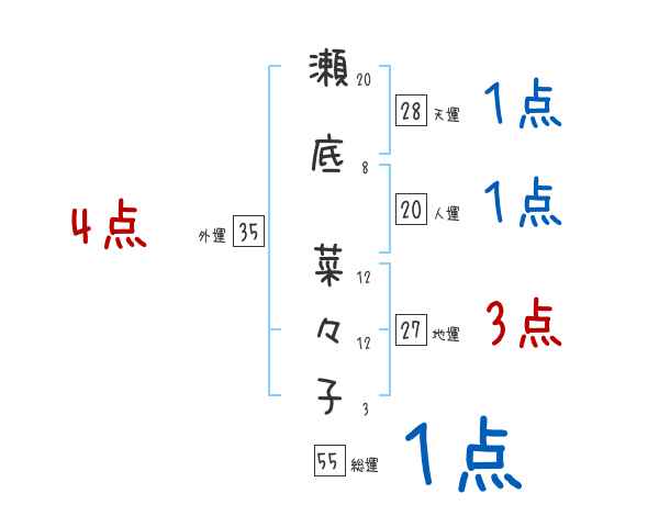 瀬底菜々子さんの画数の鑑定結果
