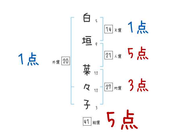 天運![]() | 白垣菜々子さんの天運は14画の1つ星!人に対して優しいがストレスを溜め込みがち。人間関係のトラブルを避けるよう気をつけましょう。 家系が持つ宿命的な運勢を表します。祖先から受け継いだ苗字ですので自分の力が及びません。家柄を象徴します。 |