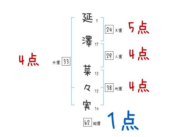 延澤菜々実さんの画数の鑑定結果