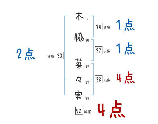天運![]() | 木脇菜々実さんの天運は14画の1つ星!人に対して優しいがストレスを溜め込みがち。人間関係のトラブルを避けるよう気をつけましょう。 家系が持つ宿命的な運勢を表します。祖先から受け継いだ苗字ですので自分の力が及びません。家柄を象徴します。 |
