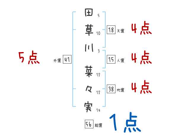 田草川菜々実さんの画数の鑑定結果