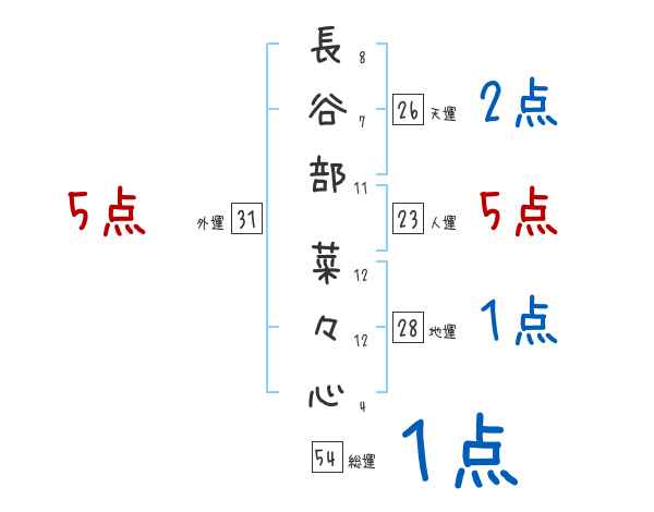 長谷部菜々心さんの画数の鑑定結果