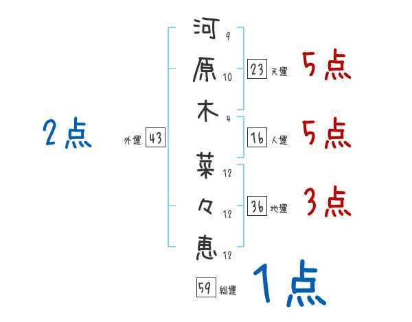 河原木菜々恵さんの画数の鑑定結果