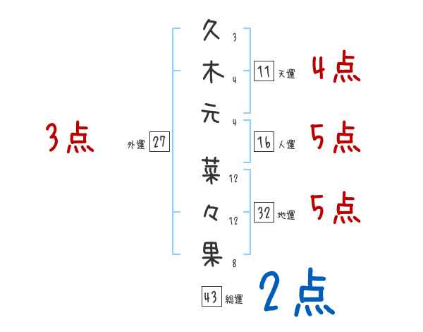 久木元菜々果さんの画数の鑑定結果