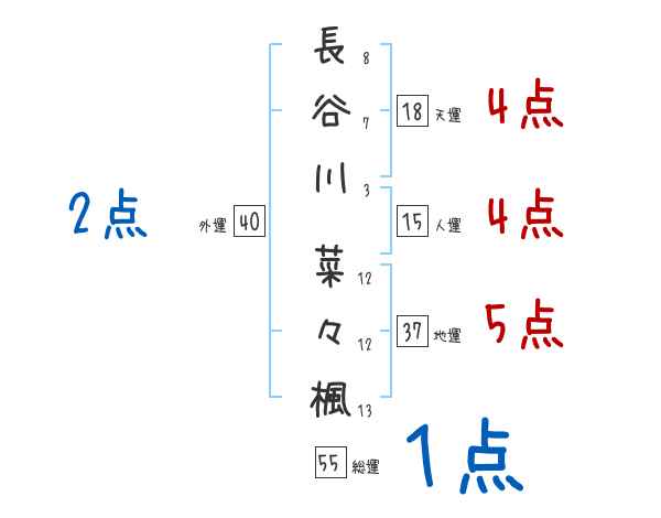 長谷川菜々楓さんの画数の鑑定結果