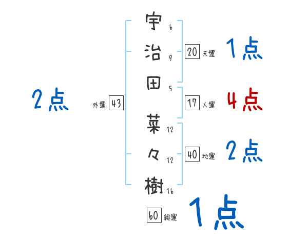 宇治田菜々樹さんの画数の鑑定結果