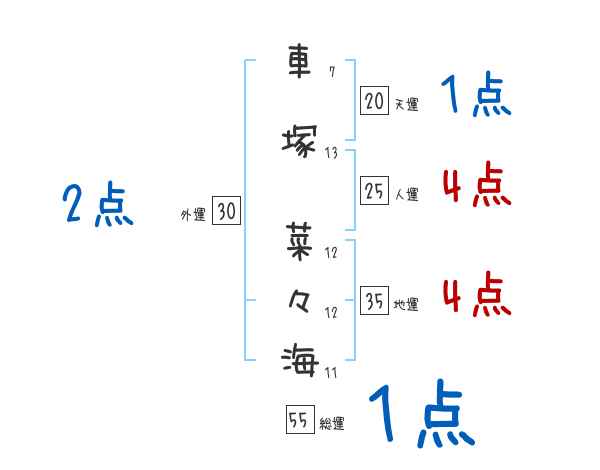 車塚菜々海さんの画数の鑑定結果