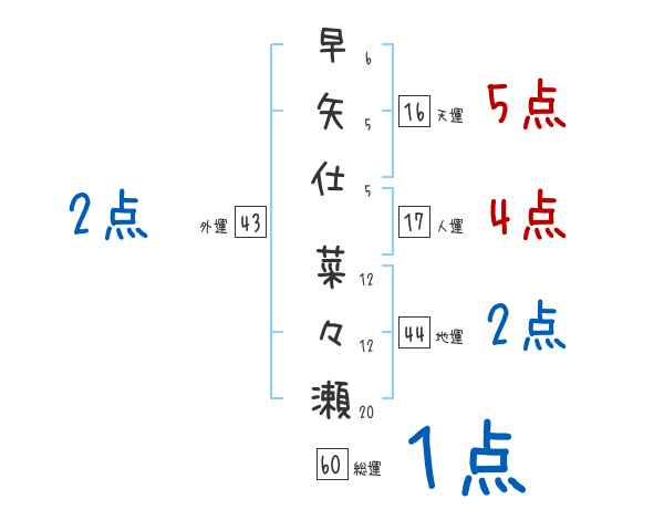 早矢仕菜々瀬さんの画数の鑑定結果